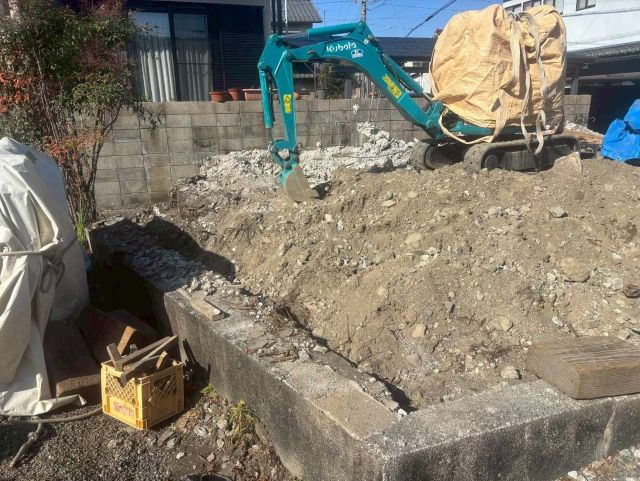 桑名市佛眼院で永代供養墓工事の様子です。コンクリート部分は大分解体できてきました。